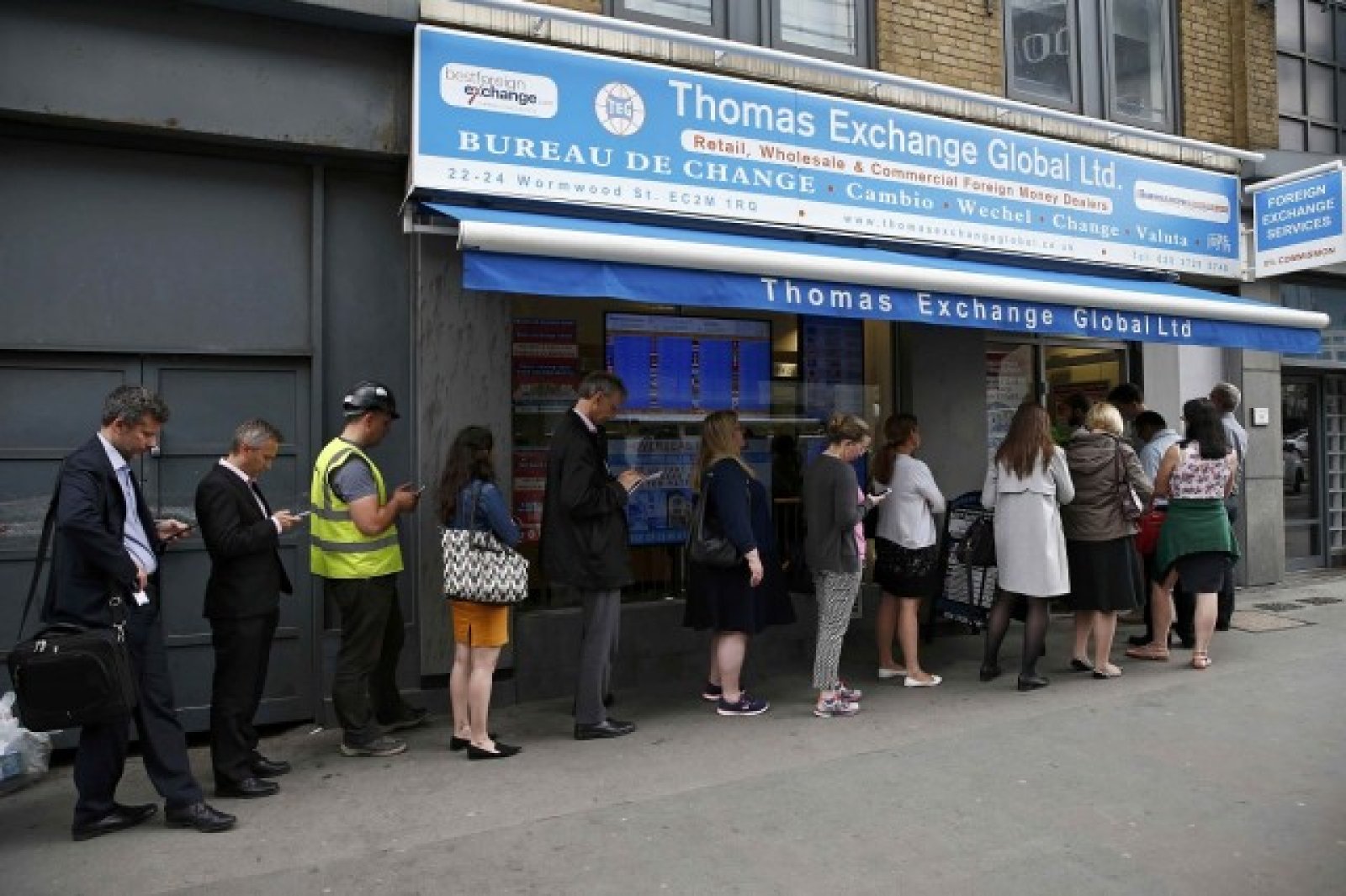 Междувременно пред много обменни бюра на Острова се извиха опашки, защото мнозина се опасяват, че при евентуален Brexit лирата ще се обезцени сериозно, а те ще обеднеят.