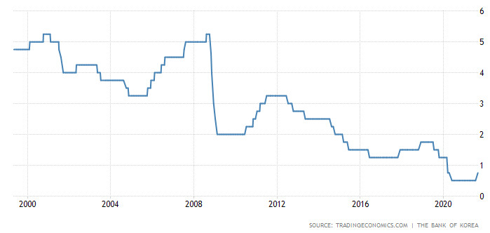 Гуверньорът Лий Жу Йеол заяви, че увеличението (първото от почти три години) от четвърт пункт до 0,75% все още оставя лихвата в позиция за подкрепа на икономиката. Той също така допълни, че настоящата вълна на пандемията, причинена от делта варианта, има по-малко лош ефект върху растежа, тъй като потребителите вече са се нагодили към новата реалност на пандемията.