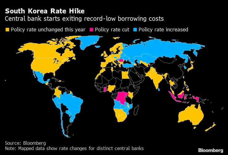 Южна Корея стана първата водеща азиатска икономика, която увеличи лихвените си проценти в четвъртък. Очакванията са увеличенията да продължат, след като институцията даде да се разбере, че финансовите рискове са по-голяма заплаха за икономиката от новия пик на коронавируса, съобщава Bloomberg.