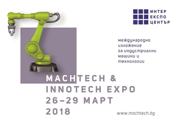 От 26 до 29 март в Интер Експо Център ще се проведе единственото специализирано изложение в България за машини и технологии за металообработка – MachTech & InnoTech 2018. На площ от над 7500 кв. м в 3 зали ще бъдат представени 150 водещи световни компании от сектора.