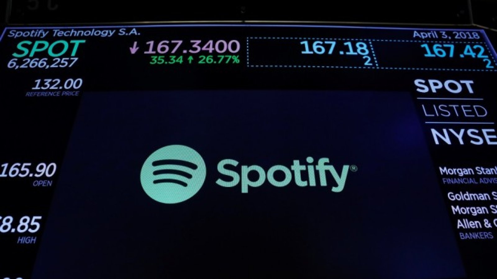 Търговията на акциите на Spotify започна рано във вторник в Ню Йорк. Компанията избра необичайно директно листване, което оцени компанията на около 28 млрд. долара. Книжата стартираха търговията на цена от 165,90 долара за акция, като 5,6 млн. от тях смениха собствеността си на тази цена, сочат данни на Bloomberg. Акциите завършиха борсовия ден с 10% под цената при отварянето – 149,01 долара за акция.