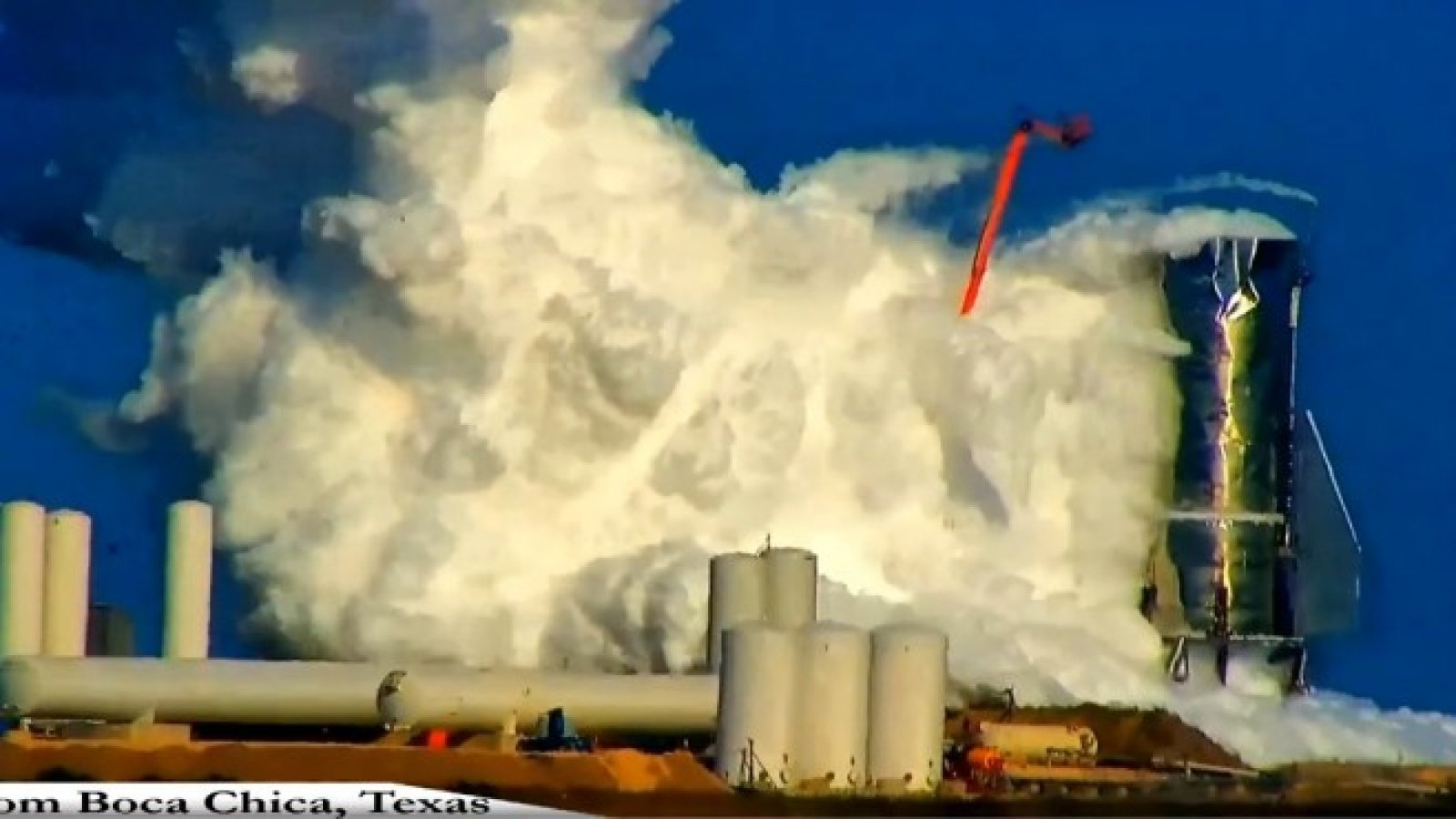 Експлозията е настъпила, докато SpaceX е провеждала тестове за напрежение върху летателния апарат на тестовата площадка на компанията в Бока Чика, Тексас. Стриймингът показа как периодично през деня ракетата изпуска газ, което е знак, че тестовете са били в ход.