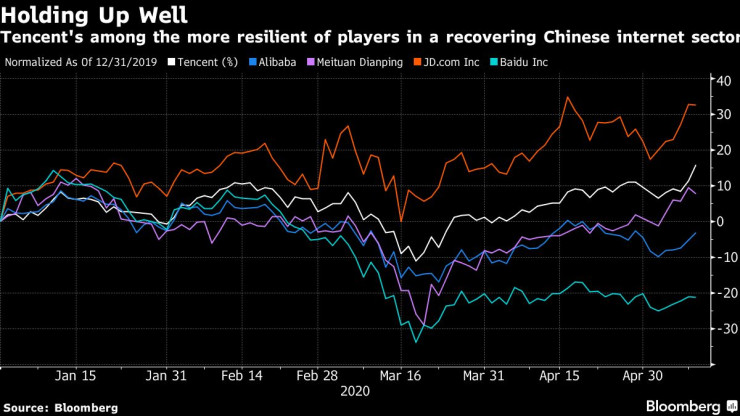 Но приходите на Tencent са се повишили до 17,7 млрд. юана, или с 32% на годишна база, надминавайки 19-процентния растеж през четвъртото тримесечие на 2019 г.