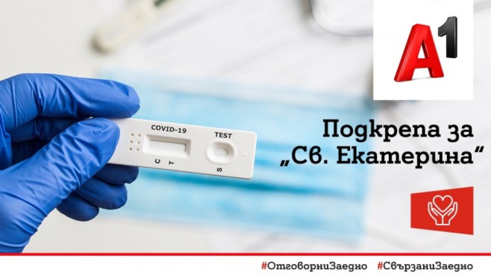 Ново дарение обяви днес А1, като бенефициентът този път е столичната болница УМБАЛ „Св. Екатерина“. Лечебното заведение ще получи 1000 бързи теста за диагностициране на COVID-19. Тестовете са от типа „бърз комбиниран антигенен тест“, като в комплектите са включени тампони за вземане на проби. Това е второто поредно дарение на бързи тестове, направено от А1, като преди това над 3300 бройки получи и Военно-медицинска академия.