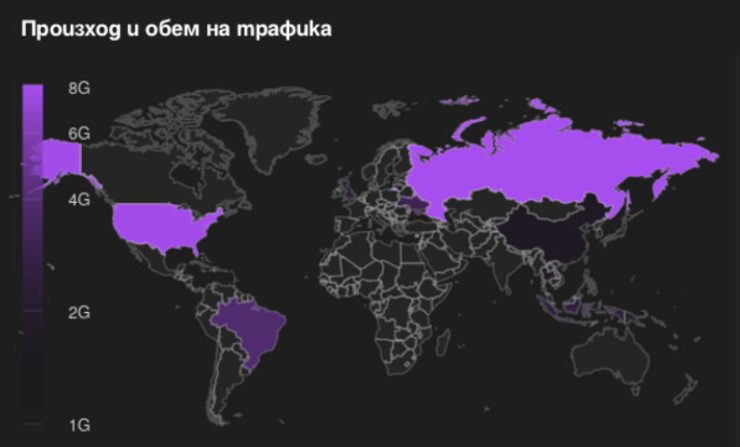 Източници на зловредния трафик, който се опитва да наруши нормалното функциониране на системата, са заразени компютри и интернет свързани устройства по целия свят: