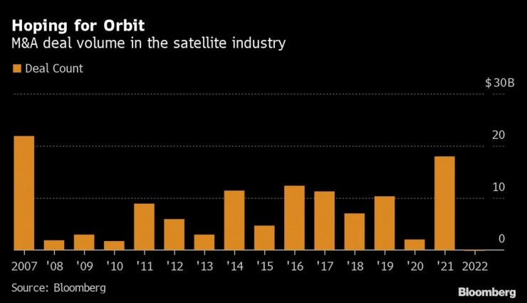 Най-големите компании за космически комуникации в света се опитват да напомпат мускули в лицето на нови претенденти, начело със Starlink на Илон Мъск. Миналата година беше най-натоварената за сателитни сделки за сливания и придобивания от 2007 г. според данни, събрани от Bloomberg. Компаниите в сектора са подписали общо 60 сделки на стойност 18 млрд. долара.