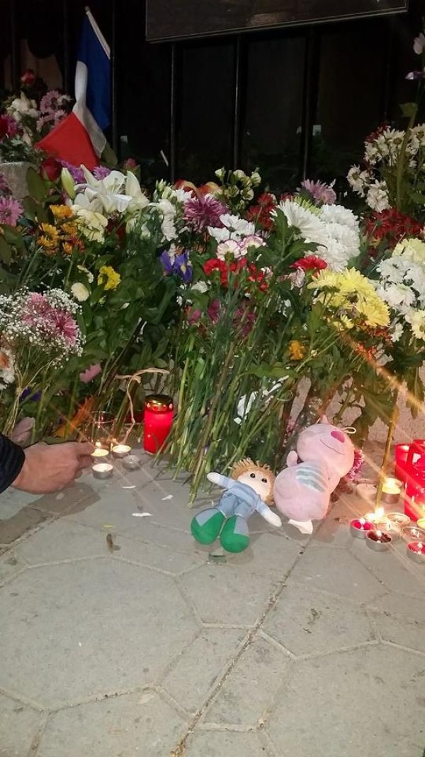 Към 19 часа пред френското посолство на София се събраха стотици в подкрепа на Париж.