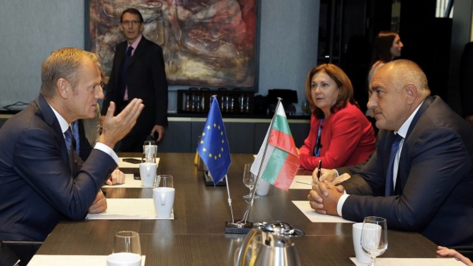 "България е лидер и аз виждам усилията, които лично ти полагаш. Аз ще бъда зад теб и можеш да разчиташ на мен за всичко, както по време на председателството, така и за влизането в "чакалнята” на еврозоната", заяви председателят на Европейския съвет при срещата си с Борисов в Естония, съобщиха от пресцентъра на Министерския съвет.