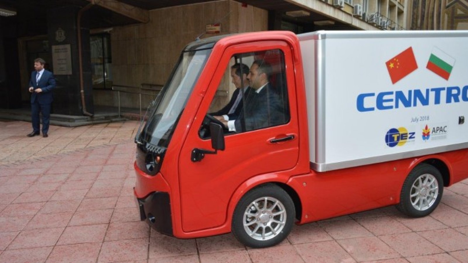 След срещата министърът на икономиката Емил Караниколов подкара на паркинга пред министерството „Метро“ - прототипа на камиончето. „Това всъщност е мултифункционална платформа, защото освен за превоз на стоки до 500 кг, той може да бъде оборудван и с хладилен отсек, за превоз на замразени храни. Камионът може да се зарежда директно от електрическата мрежа, не е необходима специална станция“, обясни докато се возеше до министъра г-н Уанг.