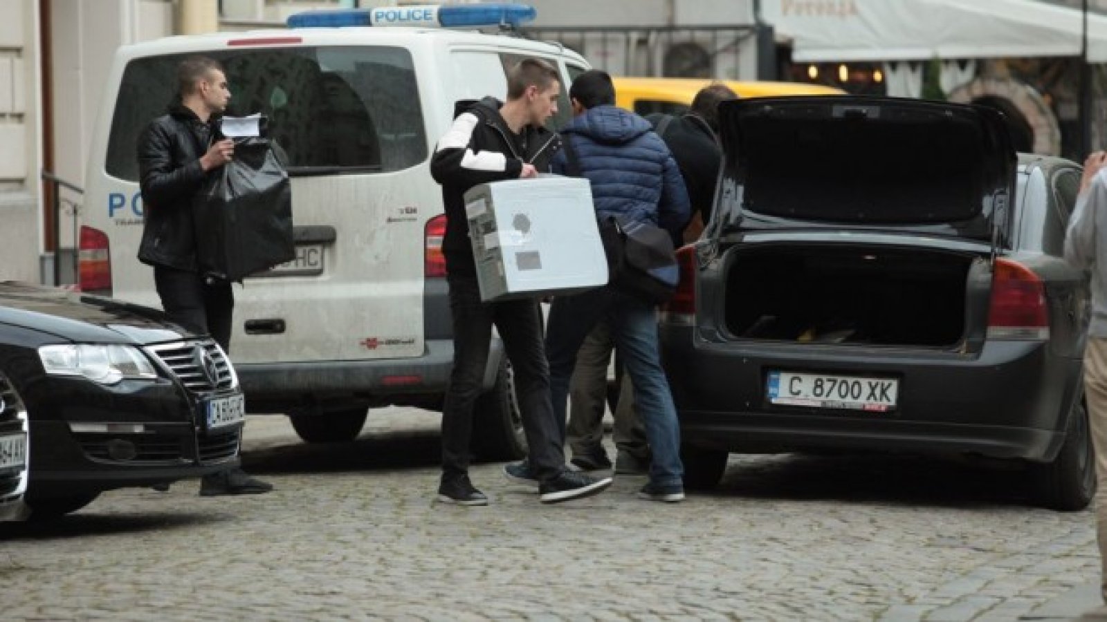 От офисите на ведомството се изнасят кашони с документи и компютри.