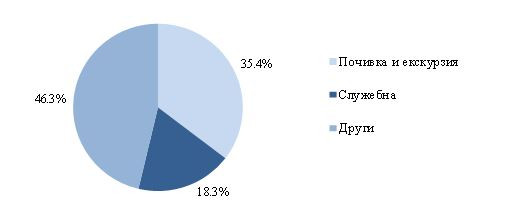 През декември 2018 г. преобладава делът на посещенията с други цели – 46,3%, следвани от почивка и екскурзия – 35.4%, и със служебна цел – 18,3% (фиг. 5).