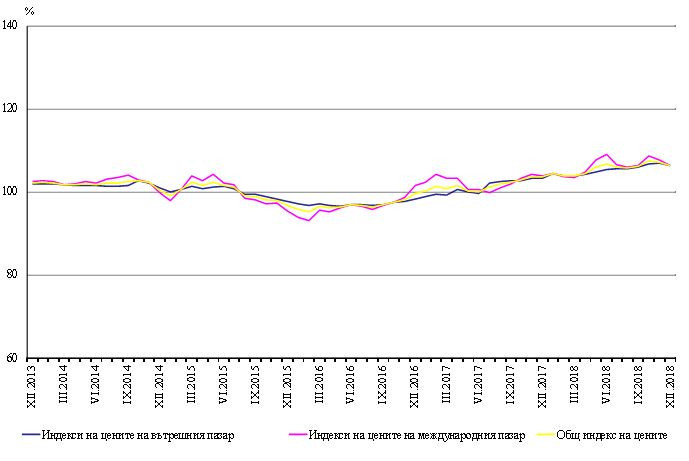 Индексът на цените на производител на международния пазар през декември 2018 г. нараства с 2,4% на годишна база, изчисляват в НСИ.