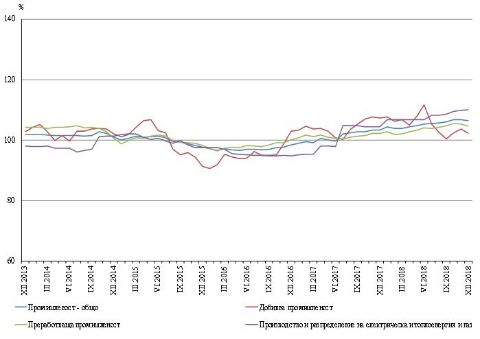 През декември 2018 г. по-високи цени в преработващата промишленост спрямо година по-рано са отчетени при: производството на дървен материал и изделия от него, без мебели - с 4,6%, производството на химични продукти - с 4,5%, и производството на превозни средства, без автомобили - с 4,2%. Намаление на цените се наблюдава при производството на основни метали - с 2,8%, и при производството на изделия от каучук и пластмаси - с 0,9%.