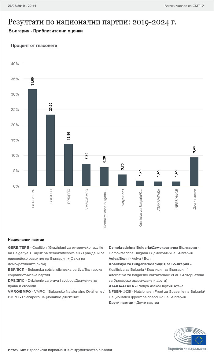 На вота най-много гласове спечели ВМРО, така че водачът на листата на политическата сила Ангел Джамбазки със сигурност става евродепутат.