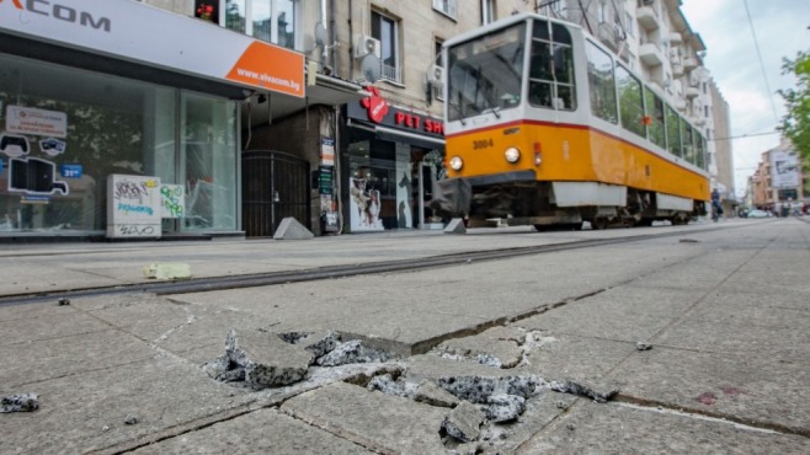 През последните дни граждани публикуваха в социалните мрежи снимки, от които се вижда как настилката между трамвайните релси се е повдигнала.