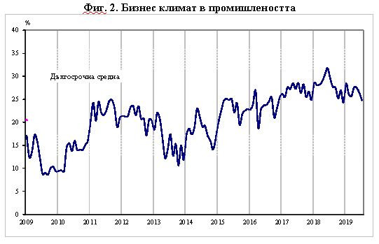 Индексът на доверието в промишлеността в България се понижи до 24,7 пункта през юли 2019 г. от 26,4 пункта през предходния месец. Това е най-ниското ниво от декември 2018 г. Силен спад има за очакванията за следващите три месеца за производството (13,4 пункта спрямо 17,1 през юни) и заетостта (-3,1 от -0,7). Перспективите за бизнес ситуацията през следващите шест месеца спаднаха до 15,3 пункта спрямо 17,2 пункта. Междувременно перспективите за продажбите през следващите три месеца растат до 4,0 от 3,7 пункта, отчита Националният статистически институт (НСИ) на базата на бизнес анкети с предприемачи.