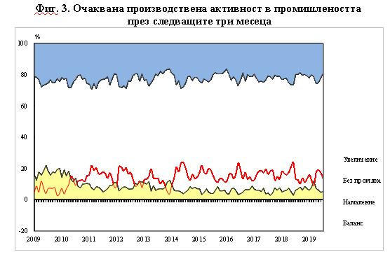 За продажните цени в промишлеността са регистрирани известни очаквания за увеличение, макар по-голяма част от мениджърите да не предвиждат промяна през следващите три месеца.