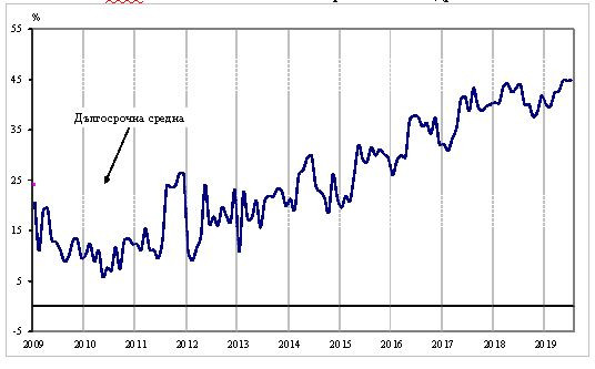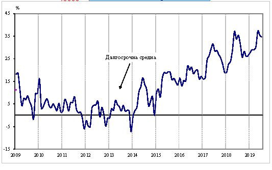 Средното натоварване на мощностите от април до юли нараства с 1,2 пункта и достига 76,9%, като с оглед на очакваното търсене през следващите месеци се предвижда излишък от мощности.