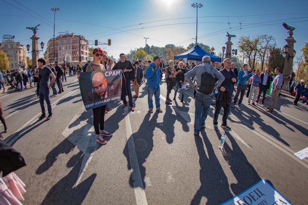 „Гешев е позор“ и „Мафията вън“ скандират протестиращи, които изминаха разстоянието от ул. „Екзарх Йосиф“ и стигнаха до Орлов мост.
