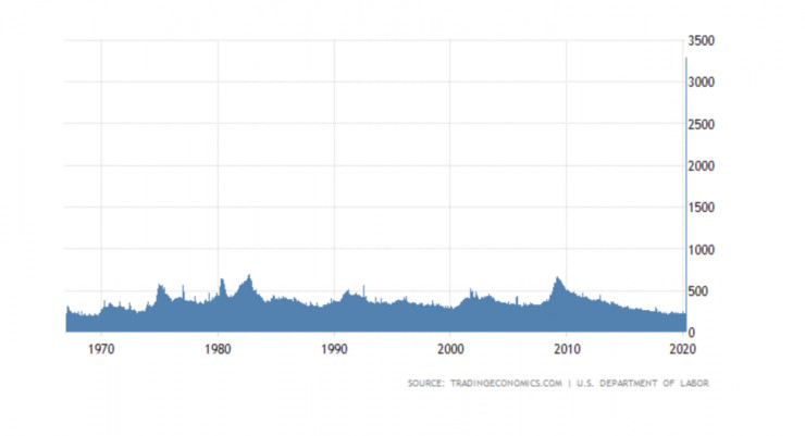 В Съединените щати броят на първоначалните заявления за обезщетения при безработица се увеличи десетократно до 3,28 милиона в рамките на една седмица.