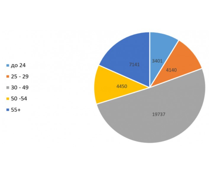 Повече от половината от новорегистрираните безработни обаче са в най-активната трудова възраст, между 30 и 49 години. Имайки предвид, че най-силно засегнатите от кризата фирми наемат предимно младежи (хотели, ресторанти, барове), е обясним по-високият от обикновено дял на хората под 29 години.