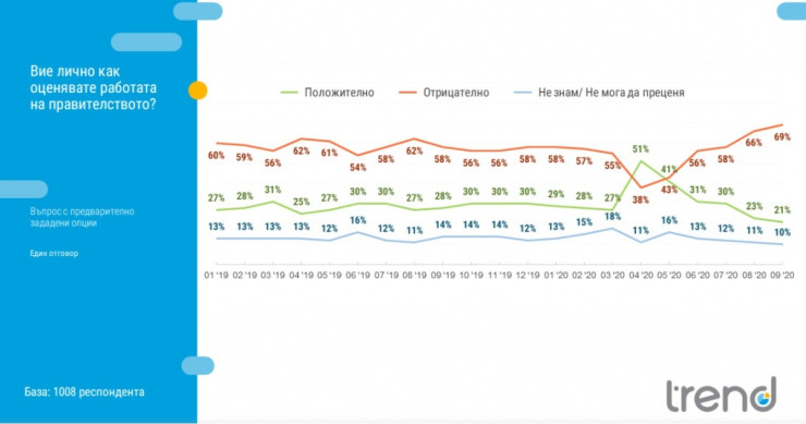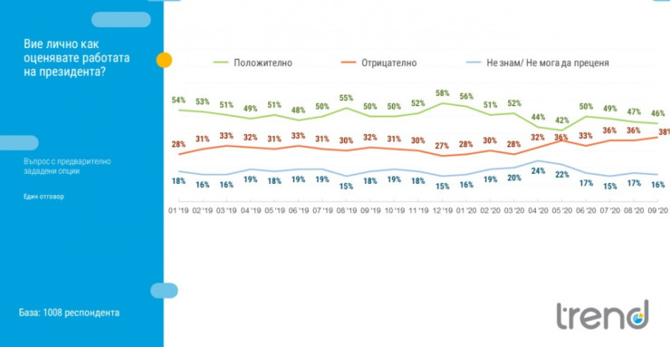 Сравнението между изследванията на „Тренд“ през август и септември не отчитат промяна в тази тенденция, но се наблюдава известна стабилизация в динамиката на обществените нагласи.