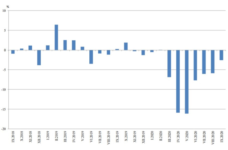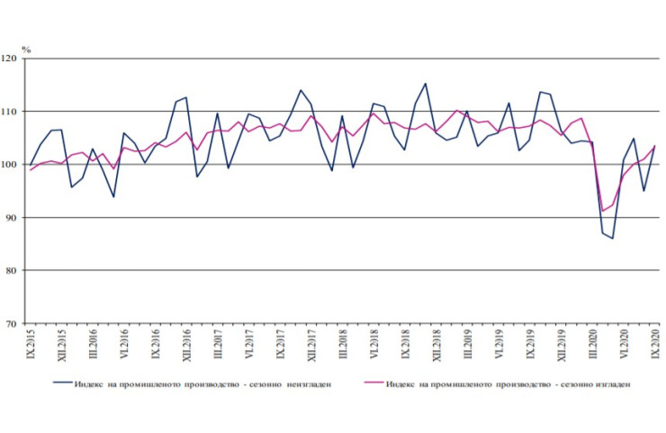 През септември промишленото производство в България регистрира годишен спад от 2,6%, докато на месечна база сезонно изгладеният индекс се увеличи с 2,3%, показват предварителните данни на Националния статистически институт (НСИ).