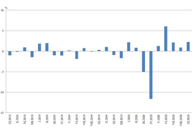 През септември НСИ регистрира повишение на месечна база в преработващата промишленост - с 3,5%, и при производството и разпределението на електрическа и топлоенергия и газ - с 0,2%, а понижение - в добивната промишленост - с 4,3%.