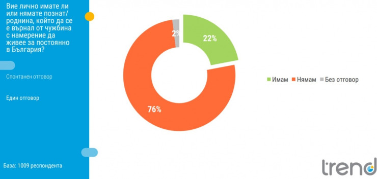 22% от анкетираните обявяват, че имат познат и роднина, който се е върнал от чужбина с намерение да живее постоянно в България.