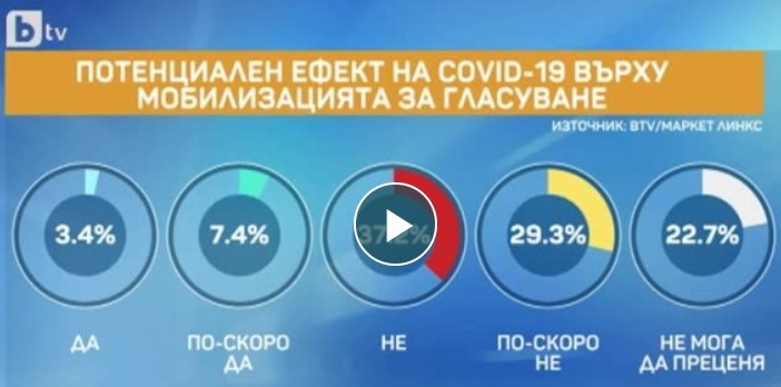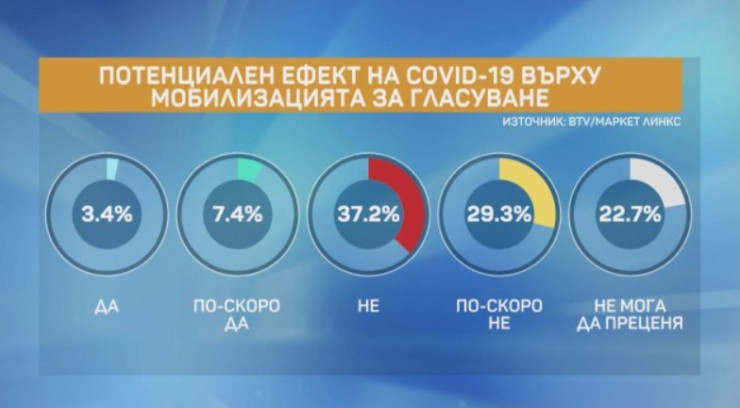 Социологът и управител на "Маркет линкс" Добромир Живков обясни, че епидемичната обстановка може да повлияе на резултата от вота. По думите му около 30% от анкетираните смятат, че изборите трябва да бъдат отложени. Близо половината от запитаните мислят, че те трябва да се проведат въпреки ръста на заболеваемост у нас.