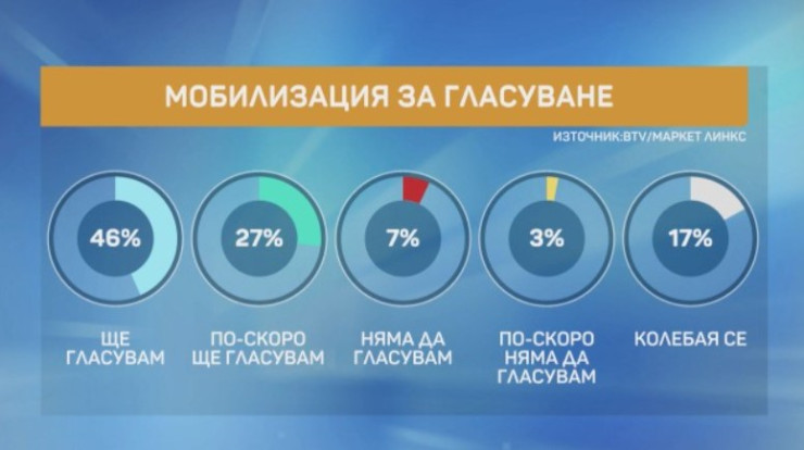 Той съобщи, че намалява процентът на хората, които заявяват категорично, че ще упражнят правото си на избор. Социологът напомни, че при предишното допитване по темата 51% от анкетираните са посочили, че ще гласуват, сега техният брой е намалял до 46%. Разликата се равнява на около 350 хил. души.