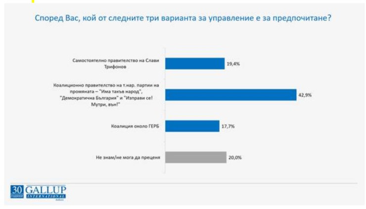 Данните показват ръст на очакването за правителство, в сравнение с предишни други сондажи на „Галъп интернешънъл болкан“.