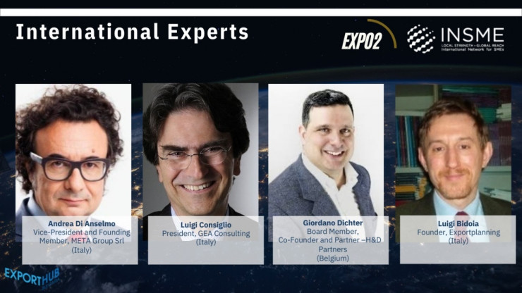 Сред лекторите на ЕXPO2 ще се включат Андреа ди Анселмо – вицепрезидент на META Group Srl – компания, специализирана в консултирането относно политики и стратегии за иновации и предприемачество, управление на средства и други, Луиджи Бидоя – основател на иновативната компания Еxportplanning за развитие на износа чрез извличане и анализ на данни и разработването на ИТ инструменти за подпомагане на вземането на бизнес решения, както и Серджо Арзени – президент на INSME, Нава Софер – президент на базирания в Канада Международен алианс за търговия, и д-р Хамса Тота – основател и президент на базираната в САЩ Innovation Business Development (IBD) – компания, специализирана в подобряването на производителността при иновации на продукти.