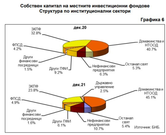 Като процент от БВП общият размер на активите на местните и чуждестранните инвестиционни фондове към декември е 6,7%, увеличавайки се спрямо 4,9% от БВП към декември 2020 г. и 5,9% към края на трето тримесечие на миналата година.
