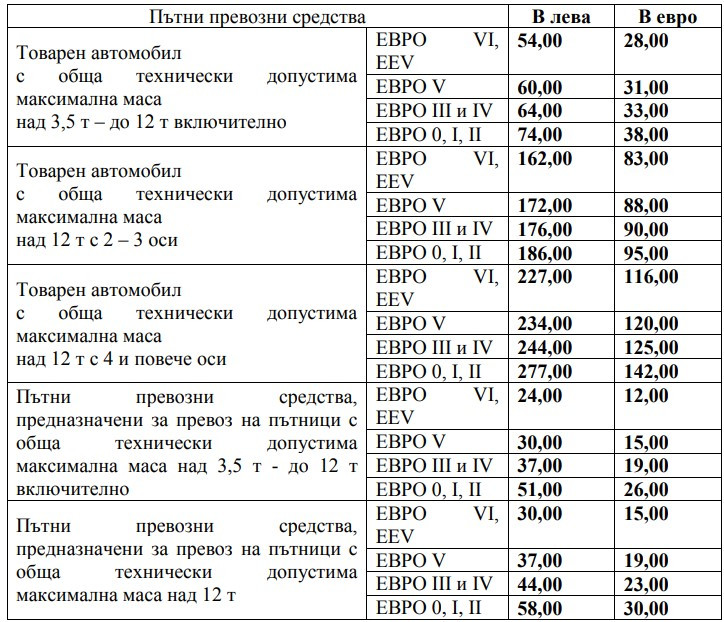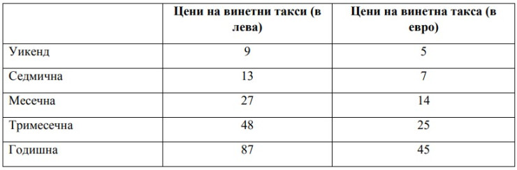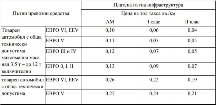 С приемането на проекта за изменение на тарифата ще бъдат актуализирани размерите на таксата на база изминато разстояние (тол такса).