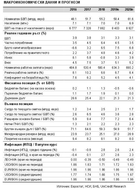 Заради материализирането на част от рисковете от предишния си основен сценарий УниКредит Булбанк ревизира в посока надолу прогнозата си за растежа на българската икономика през 2019 г. от 3,9% на 3,3%.