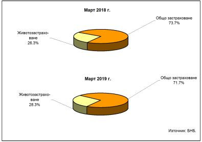 Средствата, управлявани от дружествата, извършващи общо застраховане, се увеличават с 0,1% (7,4 млн. лева) – от 5,689 млрд. лв. към края на март 2018 г. до 5,697 млрд. лв. към края на март тази година и с 204,4 млн. лв. (3,7%) спрямо края на декември 2018 г. (5,492 млрд. лева).