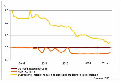 Дългосрочният лихвен процент за оценка на степента на конвергенция (ДЛП) през юли 2019 г. е 0,43%, като за една година намалява с 0,49 пр.п., а спрямо юни 2019 г. се повишава с 0,11 пр.п.