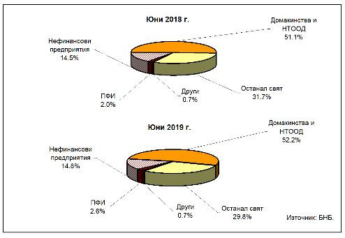 Относителният им дял в общия размер на активите към 30 юни е 28,7% при 27,3% към края на второто тримесечие на миналата година и 28,3% в края на първото тримесечие на 2019 година.