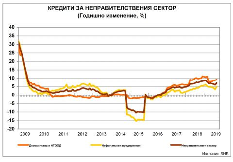 В края на миналия месец заемите за неправителствения сектор са 60,731 млрд. лв.при 59,932 млрд. лв. към август. През септември 2019 г. те растат на годишна база със 7,1% (6% годишно повишение през август).