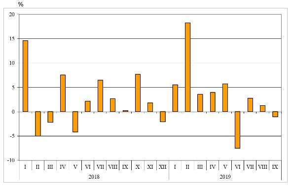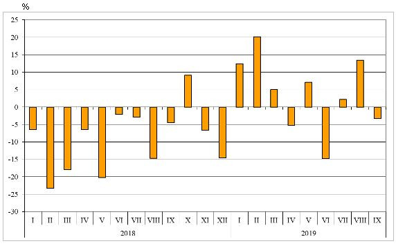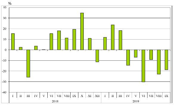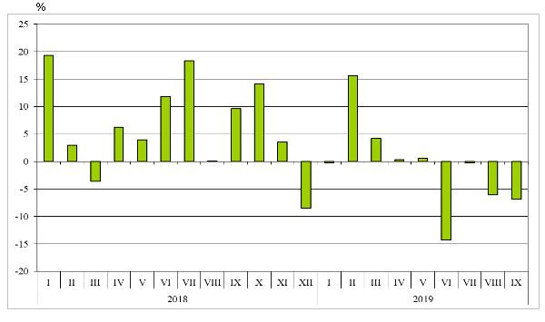 От януари до септември в страната са внесени стоки на стойност 45,599 млрд. лв. (по цени CIF), или с 1,1% по-малко спрямо същия период на 2018 година. Само през септември импортът намалява с 6,9% на годишна база, като възлиза на 4,814 млрд. лева.