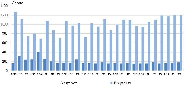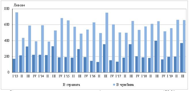 През третото тримесечие на 2019 г. средният разход при пътуване с лична цел на едно лице на възраст 15 и повече навършени години е 368,37 лв. в страната и 655,18 лв. в чужбина.