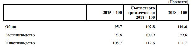 Индекси на цените на производител в селското стопанство по тримесечия