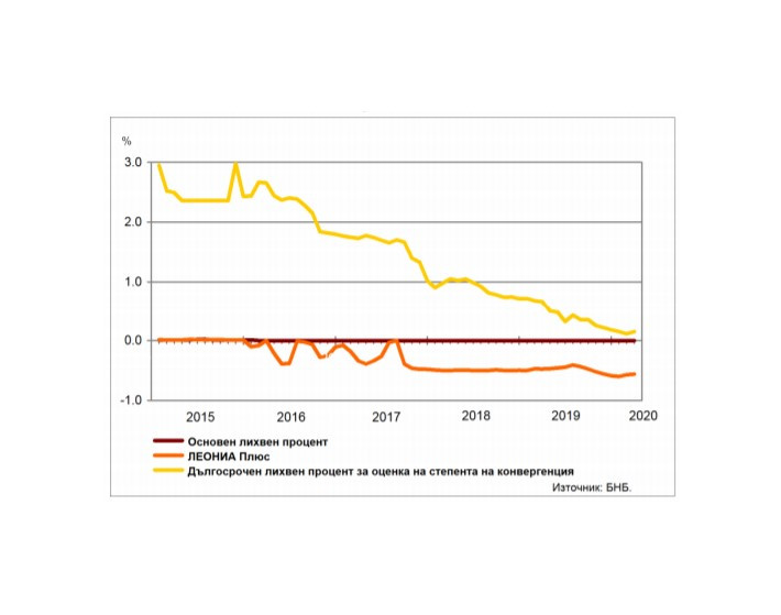 Дългосрочният лихвен процент за оценка на степента на конвергенция (ДЛП) през март 2020 г. е 0,15%. Той се понижава на годишна база с 0,52 пр.п., а на месечна база нараства с 0,03 пр.п.