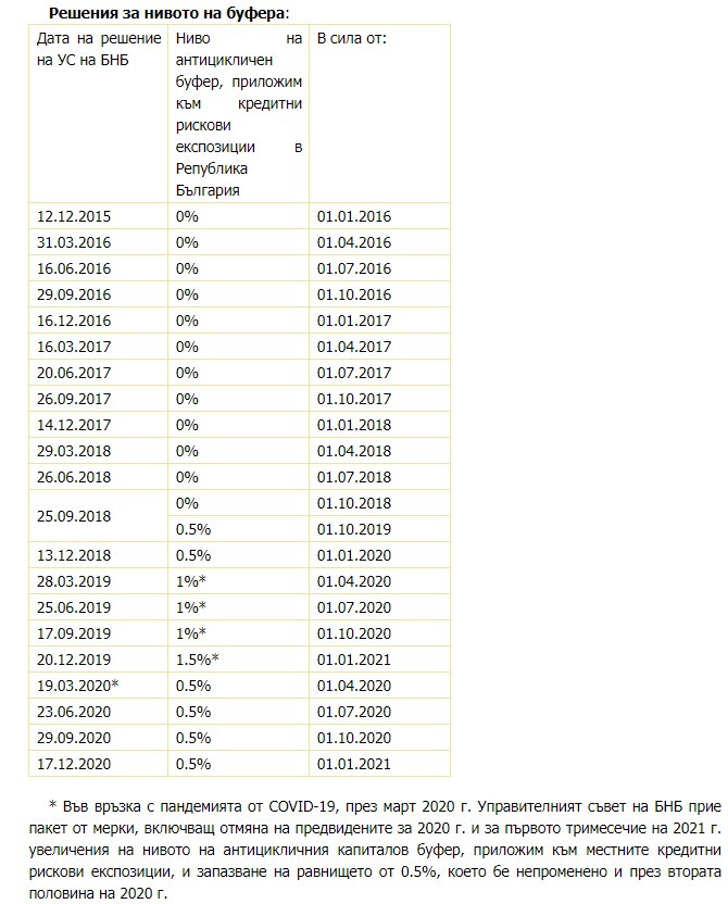 Решение за нивото, приложимо през второто тримесечие на 2021 г., управителният съвет на БНБ ще вземе през март 2021 г.
