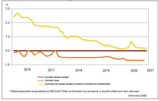 Дългосрочният лихвен процент за оценка на степента на конвергенция (ДЛП) през миналия месец е 0,19%. Спрямо януари 2020 г. той се увеличава с 0,04 пр.п., а спрямо декември 2020 г. остава без промяна.