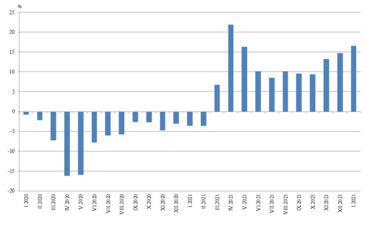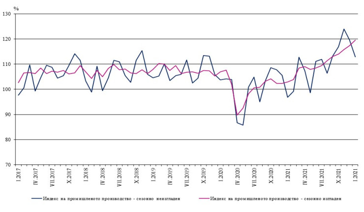 Промишленото производство в България продължава да расте вече шести пореден месец. През януари индексът на промишленото производство е нараснал с 16,5% спрямо същия месец на 2021 година, показват предварителните данни на Националния статистически институт (НСИ).