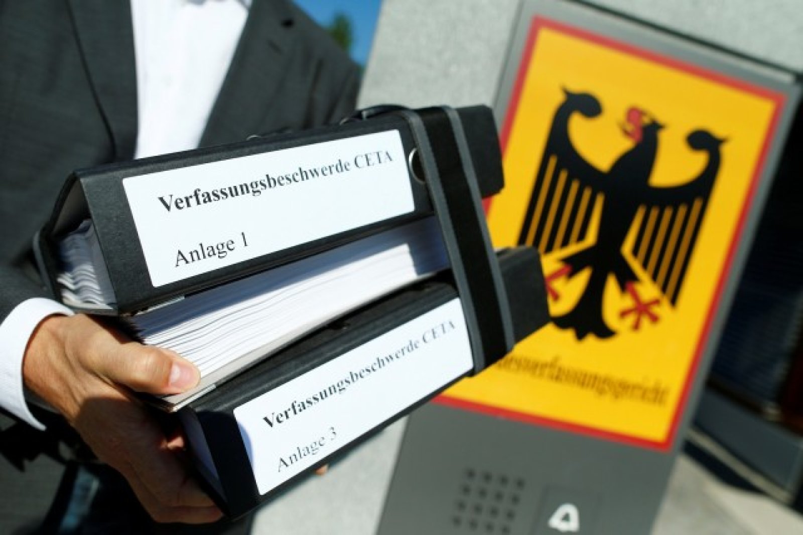 Трите германски групи – Campact, foodwatch и More Democracy, са пристигнали в съда в Карлсруе с камион, съдържащ 70 кутии с документи и общо 125 хил. подписа.