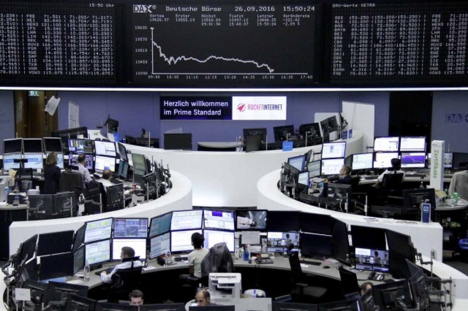 По-рано азиатските индекси също записаха понижения, а търговията в САЩ започна със спадове, като инвеститорите са предпазливи на фона на срещата на страните производители на петрол в Алжир и предстоящия първи телевизионен дебат на кандидатите за президент на САЩ.