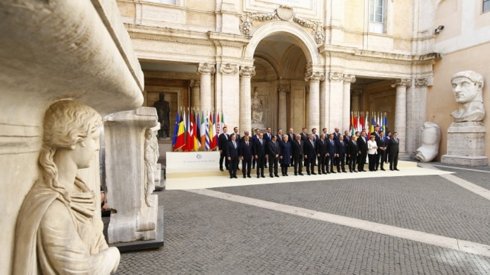 Европейската среща на върха в Рим, посветена на 60-годишнината от подписването на договорите за основаване на Евросъюза, се оказа едва ли не най-кратката в историята на Общността. Затова пък премина в максимално тържествена обстановка в знаково място – Двореца на Консерваторите на Капитолийския хълм, където през 1957 г. са положени основите на ЕС, се отбелязва в анализ на ТАСС.